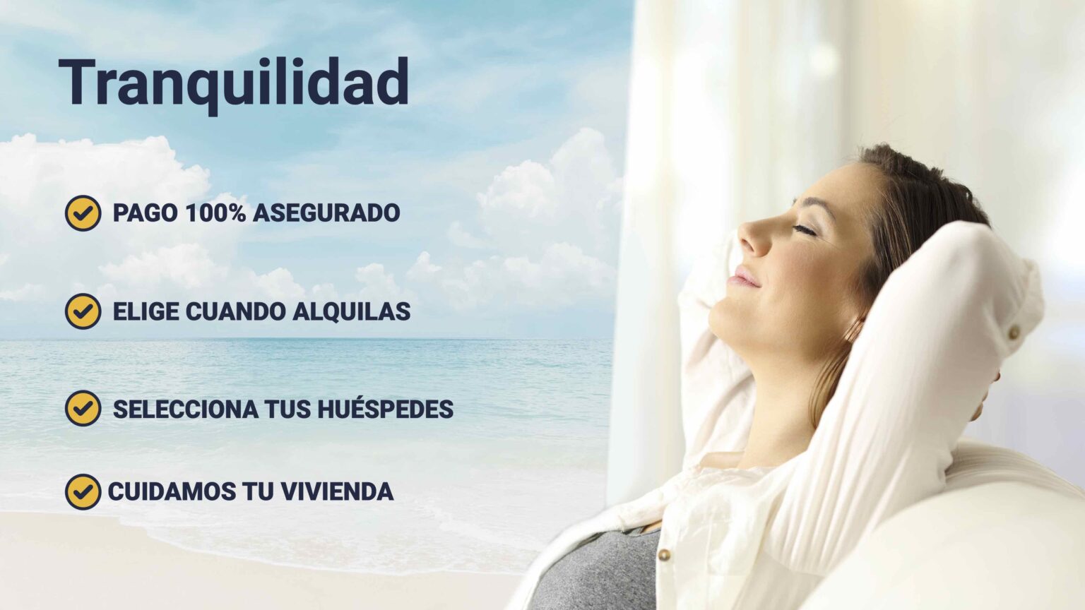 • Pago 100% asegurado: Cero impagos. El pago se realiza por adelantado, antes de la entrada del huésped a la vivienda.
