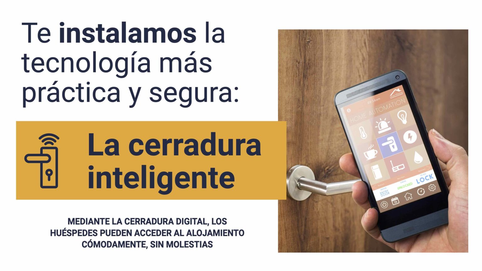 Te instalamos la tecnología más práctica y segura en tu apartamento turístico: la cerradura inteligente. Mediante la cerradura digital, los huéspedes podrán acceder al alojamiento cómodamente y sin molestias.