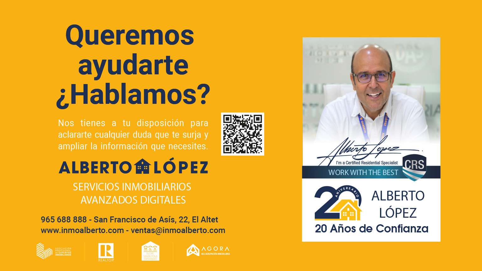Optimiza el alquiler de tu alojamiento poniéndolo en manos del equipo profesional de inmobiliaria Alberto López. Gestionamos todo tipo de propiedades en zonas urbanas, rurales y de playa. Nos encargamos de todo para que aumentes las reservas directas de tu vivienda turística y también tus ingresos. Además, eliminamos cualquier inconveniente y te ayudamos a maximizar el rendimiento de tu propiedad en Arenales del Sol, Gran Alacant, Urbanova y el Altet.